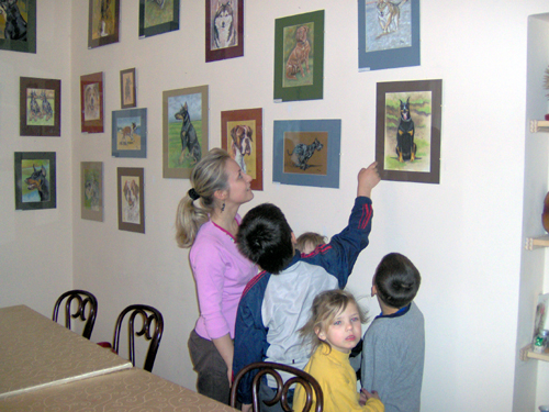 Obecnie w “Galerii w zaułku” można obejrzeć wystawę malarstwa pana Marcina Wojciechowskiego, który z wielką pasją przedstawia – psy różnej maści.