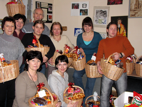 W niedzielę 21 grudnia 2008 roku mieliśmy rozwieźć potrzebującym 60 wiklinowych koszy z bogatymi łakociami na stół wigilijny. Mnie przypadło wędrowanie swojskimi drogami rodzinnej Łagiszy. Radość to była wielka, gdy z Haliną Rybak-Gredką, dobrym duchem Stowarzyszenia, prawdziwym uosobieniem Orderu Uśmiechu oraz z poetą Jackiem Golonką zjawialiśmy się w domach, gdzie było sporo dzieciaków, z darami. Radość tym większa, że nie tyle dobra materialne ich cieszyły, ile sama przyjazna wizyta ludzi znanych w środowisku.